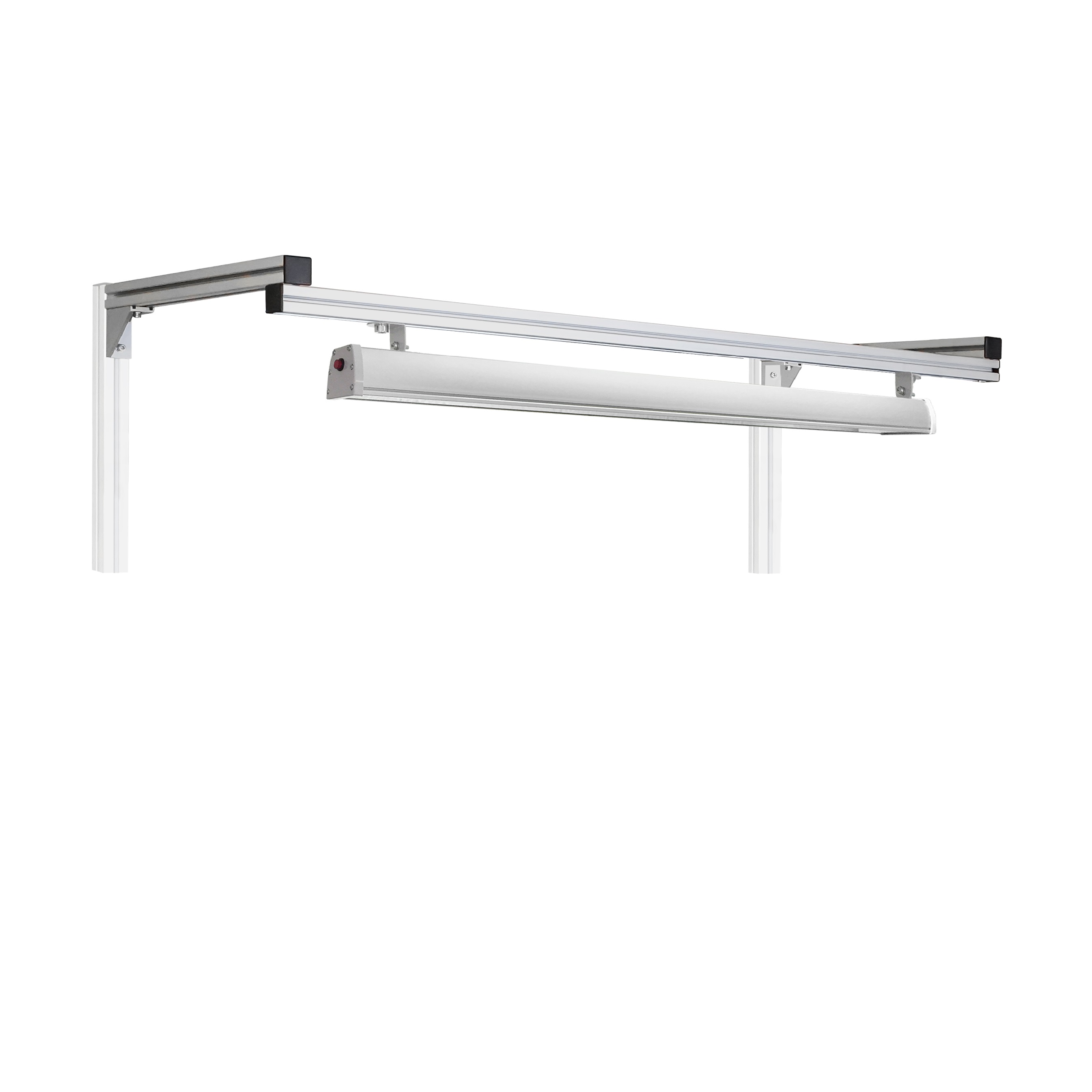 Комплект освещения светодиодный из конструкционного профиля фиксируется на задние стойки на кронштейнах Г-образной формы, регулируется по высоте от уровня столешницы от 400 до 1400 мм, с помощью держателей регулируется направления потока света.