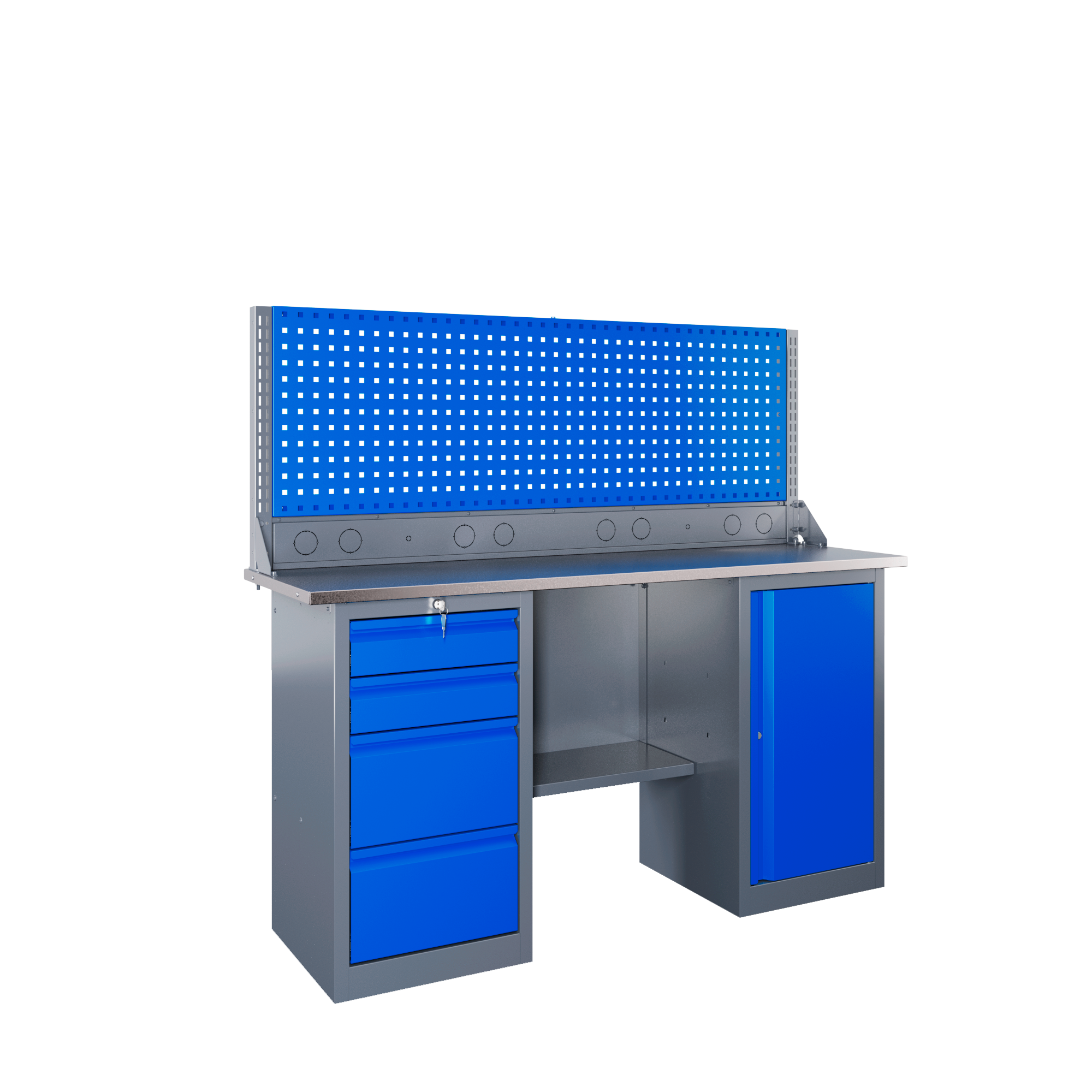 Самые компактные верстаки с глубиной столешницы 500 мм. Благодаря небольшой глубине, такие верстаки легко размещаются в ограниченных пространствах, например, в гаражах, мастерских и тд. Несмотря на компактные размеры, верстаки могут быть оснащены полками, ящиками и держателями для инструментов, что помогает поддерживать порядок и быстро находить нужные предметы.
