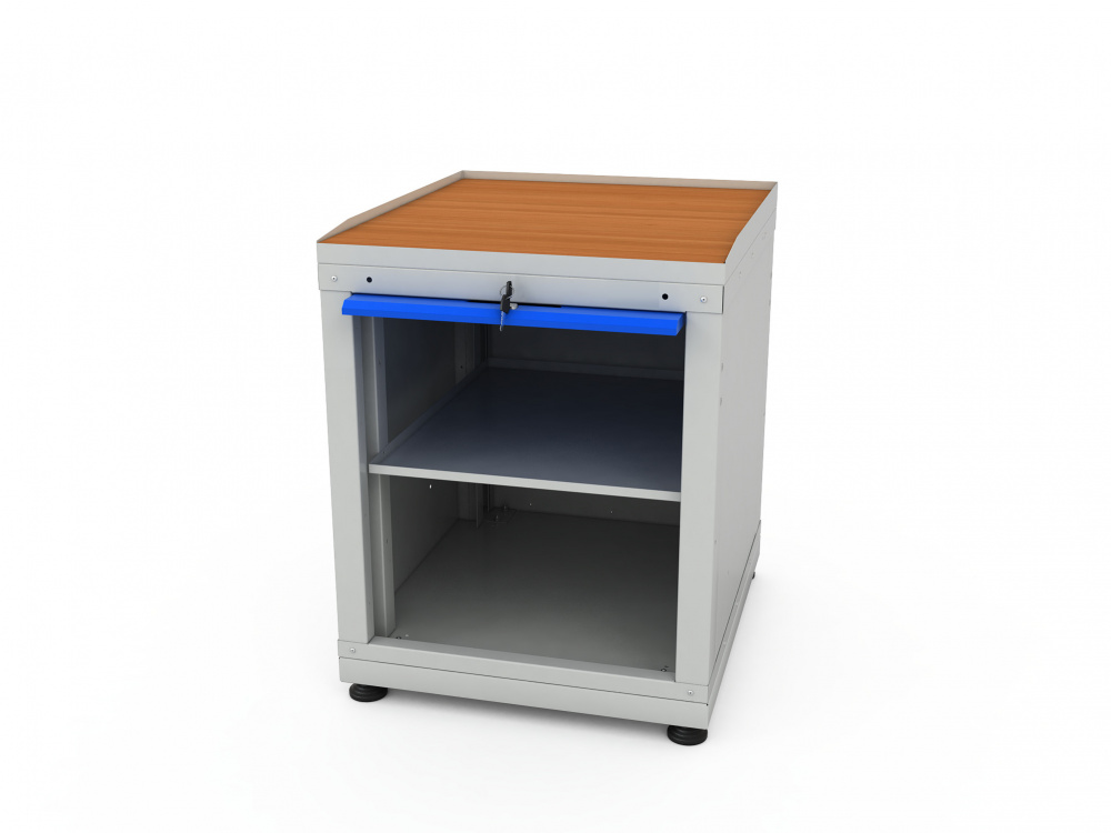 • Полка в тумбе -1 шт. установлена на стальные салазки, которые позволяют выдвигать полку на себя до 70% для облегчения разгрузки/погрузки, нагрузка до 50 кг.
